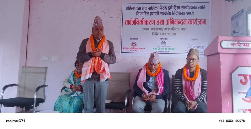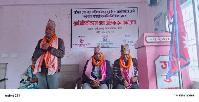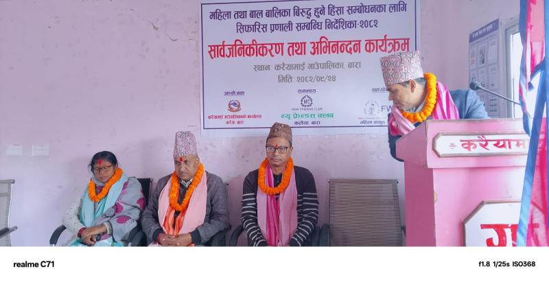 महिला तथा बाल बालिका विरुद्ध हुने हिंसा सम्बोधनका लागि सिफारिस प्रणाली सम्बन्धि निर्देशिका,२०८२ को सार्वजनिकीकरण तथा अभिनन्दन कार्यक्रम मिति २०८२ पौष २४ गते सु सम्पन्न।