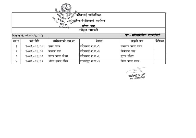 » स्वीकृत दरखास्तको नामावली प्रकाशन तथा लिखित परीक्षा सम्बन्धमा।