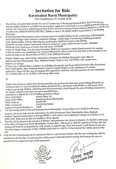 Invitation of Bids(KRM/NCB/W/01/2081/082)