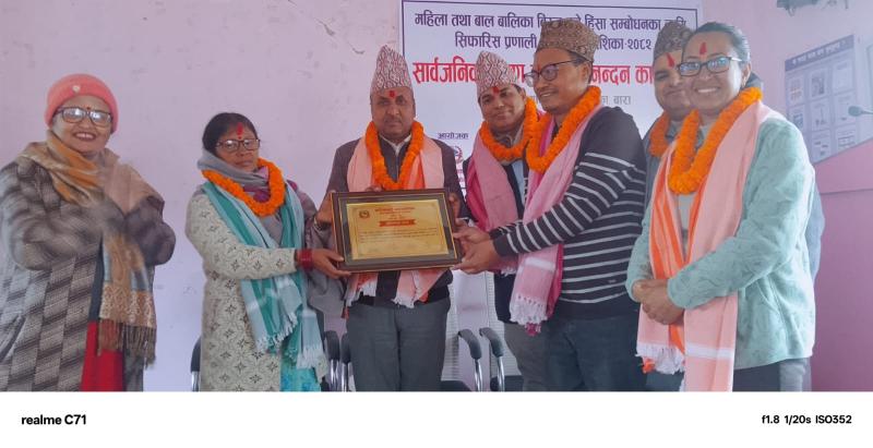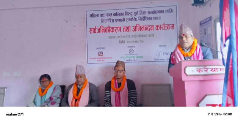 महिला तथा बाल बालिका विरुद्ध हुने हिंसा सम्बोधनका लागि सिफारिस प्रणाली सम्बन्धि निर्देशिका,२०८२ को सार्वजनिकीकरण तथा अभिनन्दन कार्यक्रम मिति २०८२ पौष २४ गते सु सम्पन्न।