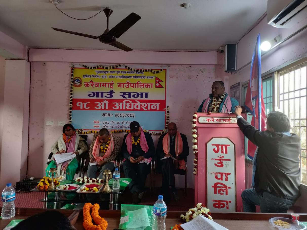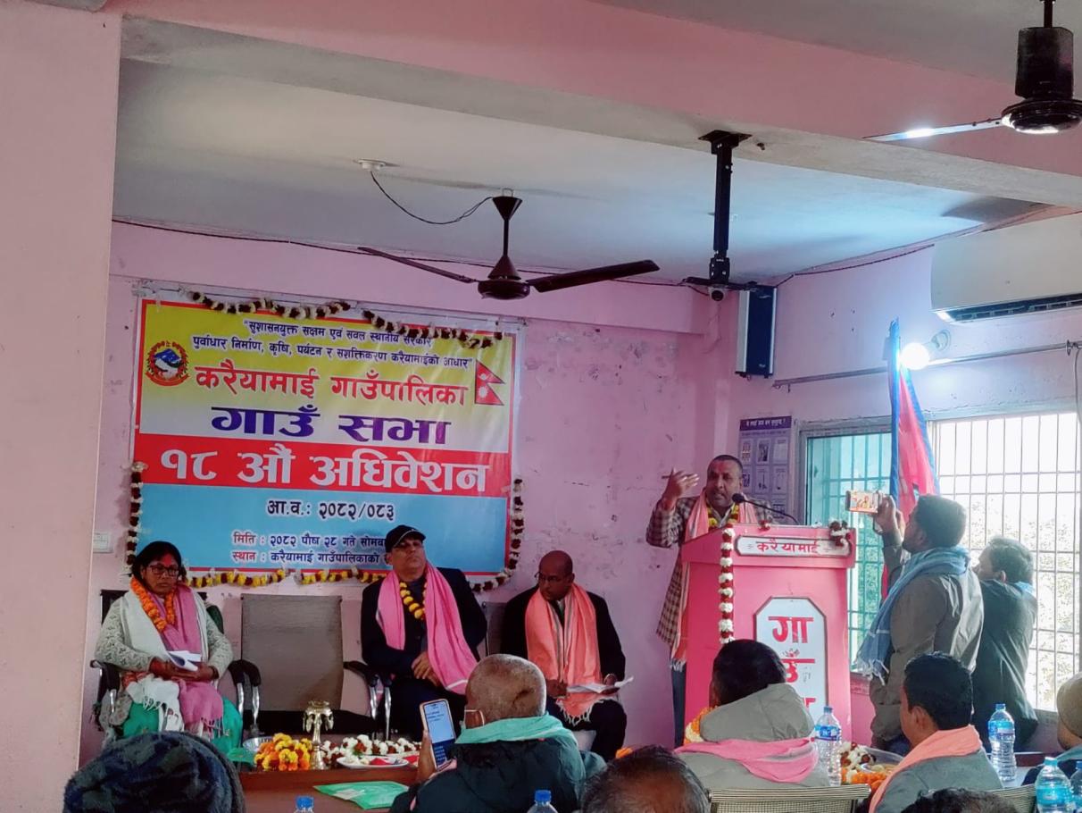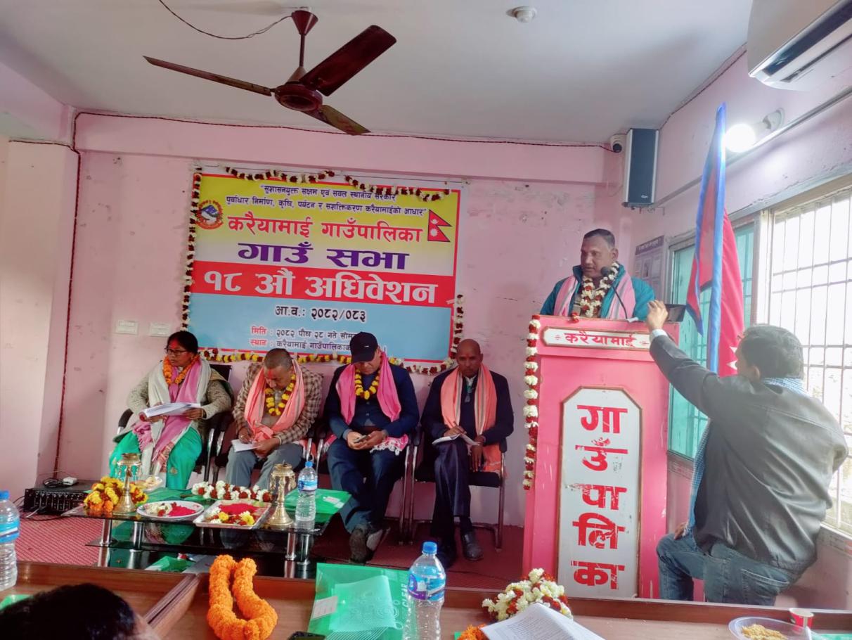 आज मिति २०८२ साल पौष २८ गते सोमबारका दिन यस करैयामाई गाउँपालिका, गाउँसभाको १८औं अधिवेशन सु-सम्पन्न ।।